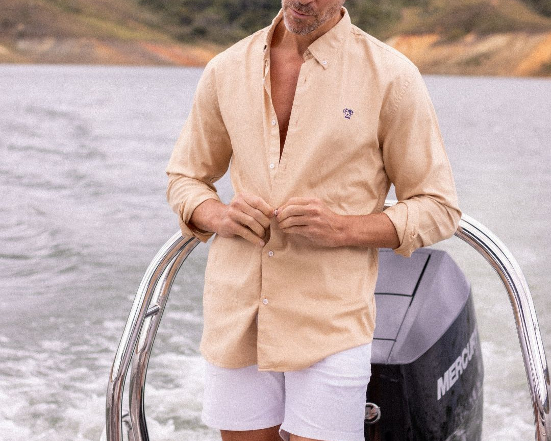 Fabricada en algodón Oxford de alto gramaje, esta camisa ofrece una estructura firme, pero suave al contacto con la piel.