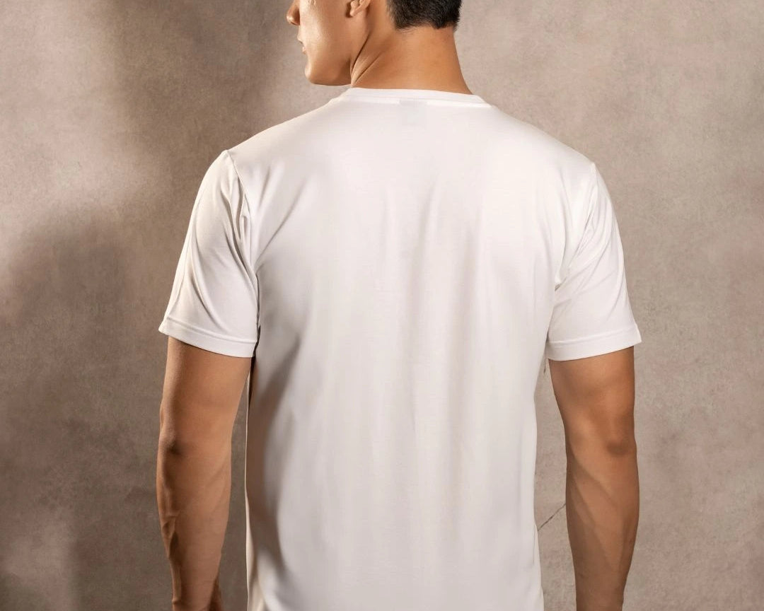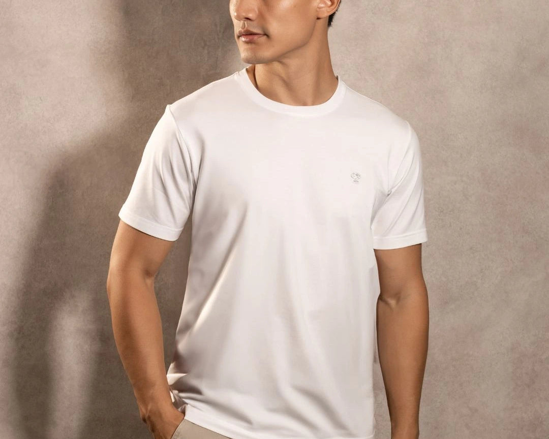 Esta camiseta de corte regular ofrece un balance perfecto entre comodidad, sobriedad y tecnología, ideal para un estilo de vida activo pero con principios firmes.