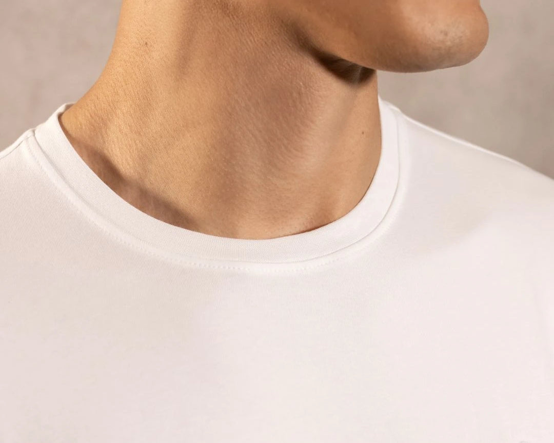 Fabricada con 92% algodón peruano y 8% spandex, esta camiseta combina la frescura y suavidad del algodón con la flexibilidad necesaria para el día a día.